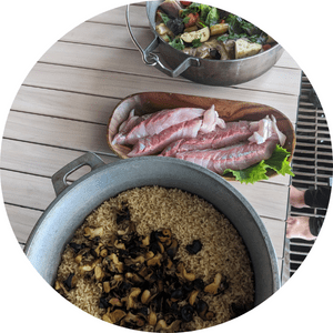 皆で釣った魚や採った貝で